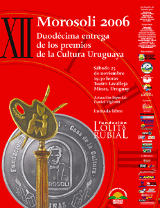 ![]() | El Prof. Mario Benedetti en momentos de recibir el Morosoli de Oro 2006 de manos del Mtro. Homero Guadalupe |