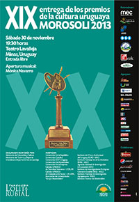 El Ing. Miguel Brechner junto al Dr. Gustavo Guadalupe en el momento de recibir el Morosoli de Oro 2013 |